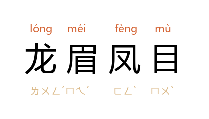 引《水浒传·第九回》:「马上那人,生得龙眉凤目,皓齿朱唇。」《镜花缘·第五六回》:「众人看时,只见生得龙眉凤目,举止不凡。」