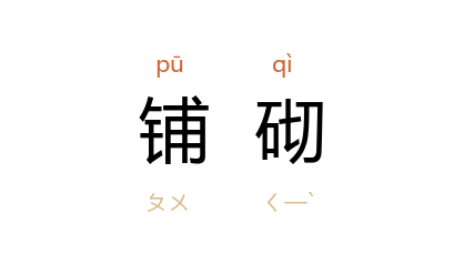 ⒈ 用砖、石头等平整的覆盖地面或建筑物的表面。
