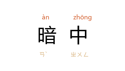 ⒉ 私下、背地里。也作「暗地」、「暗里」。