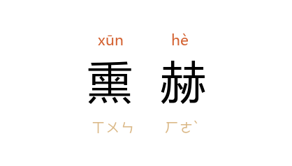 引晋 傅咸 《与汝南王亮书》:“此之熏赫,震动天地,自古以来,封赏未有若此者也。”晋 夏侯湛 《雷赋》:“伊朱明之季节兮,暑燻赫以盛兴。”