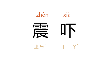 引《红楼梦》第五八回:“袭人 唤 麝月 道:‘我不会和人拌嘴, 晴雯 性太急,你快过去震吓他两句。’”《三侠五义》第十五回:“两边差役一声喊,堂威震吓。”
