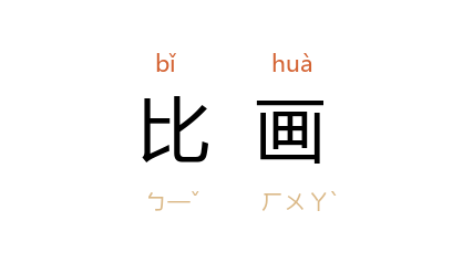 ⒈ 用手或拿着东西做出姿势来帮助说话或代替说话。