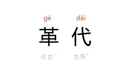 引晋 袁宏 《后汉纪·光武帝纪七》:“一国不治,天下不为之乱。故时有革代之变,而无土崩之势。”《周书·静帝纪》:“籙表革代之文,星垂除旧之象。”清 袁枚 《随园随笔·术数》:“歷数 汉 唐 以来, 河 清为革代之兆。”