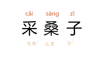 ⒈ 词牌名。原本 唐 教坊大曲,名《採桑》或《杨下採桑》。 南朝 后主 作词名《採桑子传》, 宋 初名《採桑子》。一名《罗敷媚》、《丑奴儿》。双调四十四字。唐 教坊大曲有《采桑》,截取一“遍”单行,后用作词牌。又名《丑奴儿令》、《罗敷媚》等。双调,四十四字,平韵。又有《添字采桑子》,四十八字或五十四字;《摊破采桑子》,一名《摊破丑奴儿》,六十字;《促拍采桑子》,一名《促拍丑奴儿》,五十字;皆平韵。 宋 词《采桑子慢》一名《丑奴儿慢》,九十字,多平仄互叶。