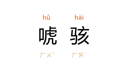 引郭沫若 《洪波曲》第十四章二:“我当天穿的是军服,而且还带着证章,这样的装束是企图在路上唬骇唬骇人,省些麻烦。”郭沫若 《天地玄黄·比基尼岛上的试验》:“今天一个有原子弹的国家拿着原子弹去唬骇别人,这不分明也是强盗行为吗?”