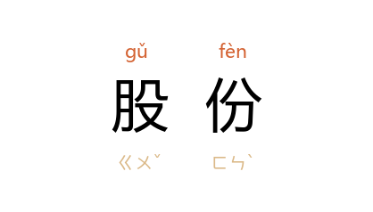 ⒈ 股份公司或其他合伙经营的工商企业的资本单位。也作「股分」。