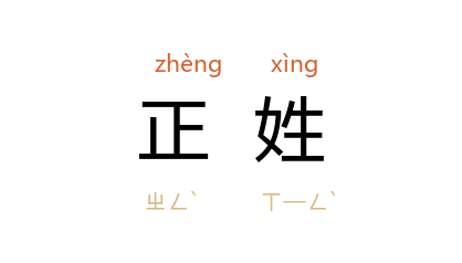 引《礼记·大传》“繫之以姓而弗别” 汉 郑玄 注:“始祖为正姓,高祖为庶姓。”孔颖达 疏:“姓,正姓者,对氏族谓正姓也。云‘始祖为正姓’者,若 炎帝 姓 姜、黄帝 姓 姬,周 姓 姬,本於 黄帝,齐 姓 姜,本於 炎帝,宋 姓 子,本於 契,是始祖为正姓也。”清 袁枚 《随园随笔·不可亦可类》:“故 刘嘏 以为同姓有正姓、庶姓、单姓、复姓之分。”