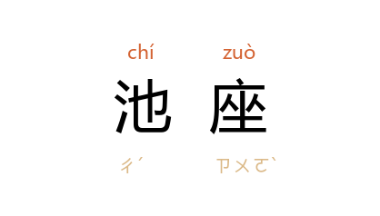 ⒈ 指剧场环绕方形舞台左、右、正中三面的楼下座位。旧时剧场,大都以楼上“官座”为优等座席,池座则为平民观众的座席。后来因池座距离舞台较近,便于欣赏表演, 清 末 民国 初乃一变而为剧场优等座席,故而池座即指剧场正厅中的座位。