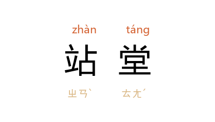 ⒈ 法庭开审案件,法警立于庭上,维持秩序,称为「站堂」。