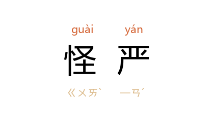 ⒈ 犹怪诞。《管子·法法》:“国毋怪严,毋杂俗,毋异礼,无私议。”郭沫若等集校引王念孙曰:“严读为譀,《说文》曰:'譀,诞也;夸,譀也。'譀与严古今字也……'国毋怪严',严亦与譀同。怪譀犹怪诞耳。”一说“严”应读作“业”。于省吾《双剑誃诸子新证·管子》:“严应读作业。严、业一声之转。”