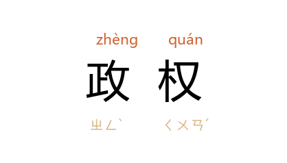 ⒈ 人民管理政府的权力,相对于治权而言。政为众人之事,管理众人之事的力量,称为「政权」。可分为选举、罢免、创制、复决四种。