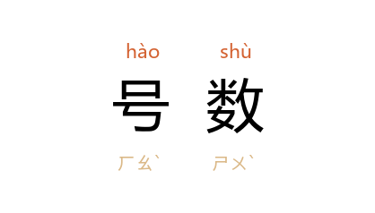 引《二十年目睹之怪现状》第六十回:“你回去把那第几卯,第几名,及部照的号数,一切都抄了来,我和你设法,去请个封典。”鲁迅 《书信集·致萧军》:“二日信收到,内云‘同一条路,只是门牌改了号数’,这回是没有什么‘里’的么?”