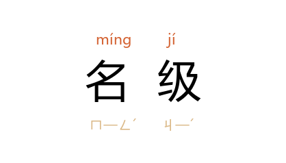 引《文选·颜延之<陶徵士诔>》:“韜此洪族,蔑彼名级。”李周翰 注:“名级,策名阶级也。”《北史·卢同传》:“若名级相应者,即以黄素楷书大字,具件阶级数,令本曹尚书以朱印印之。”宋 朱弁 《曲洧旧闻》卷四:“祖宗以来,从官多举已仕官而名级尚微者。”
