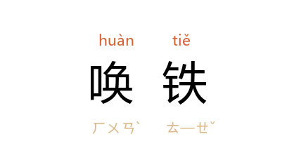 引五代 王仁裕 《开元天宝遗事·唤铁》:“太白山 有隐士 郭休 ……每于 白云亭 与宾客看山禽野兽,即以槌击一铁片子,其声清嚮,山中鸟兽闻之,集于亭下,呼为‘唤铁’。”元 艾性 《题友人归隐图诗》:“早晚相从弄明月,细听唤铁响苍筠。”
