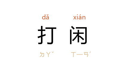 引宋 杨万里 《晓过丹阳县》诗:“小儿不耐初长日,自织筠篮胜打闲。”井岩盾 《辽西纪事》:“大活一连扛了二十个,腰也弯了,腿也直了,扛活顶不住一个了,就打闲。”