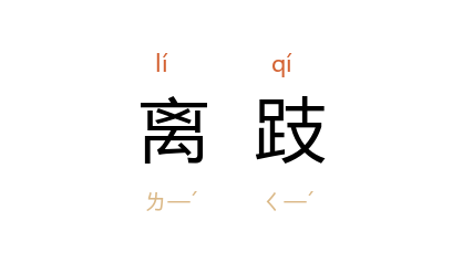 ⒈ 踮起脚跟。形容用力的样子。《庄子·在宥》:“今世殊死者相枕也,桁赤怓蛘壑],刑戮者相望也,而儒、墨乃始离跂攘臂乎桎梏之间。”成玄^疏:“离跂,用力貌也。圣迹为害物之具,而儒、墨方复攘臂分外,用力于桎梏之间,执迹封教,救当世之弊。”《淮南子·俶真训》:“于是万民乃始慲觟离跂,各欲行其知伪,以求凿枘于世,而错择名利。”一说谓离世独立,超出凡俗。参见“利跂”。
