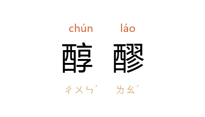 引《汉书·卷四九·爰盎传》:「乃悉以其装赍,买二石醇醪。」《儒林外史·第七回》:「琴瑟琵琶路上逢,一盏醇醪心痛。」