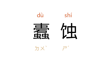 ⒊ 侵蚀;逐渐侵害,使之变坏。