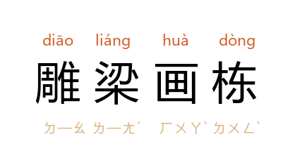 ⒈ 有彩绘雕刻的梁柱。用来形容建筑物的富丽堂皇。元·无名氏也作「雕梁画柱」、「画栋雕梁」、「画梁雕栋」。