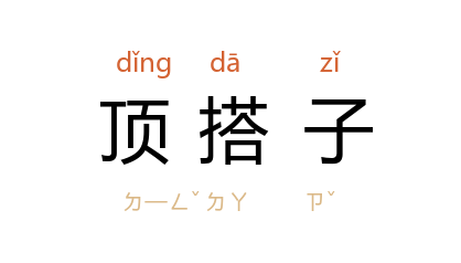 亦省称“顶搭”。 《西游记》第四二回:“就袖中取出一把金剃头刀儿,近前去,把那怪分顶剃了几刀,剃作一个 泰山 压顶,与他留下三个顶搭,挽起三个窝角揪儿。”