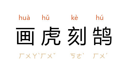 ⒈ 《东观汉记·马援传》:“与兄子严敦书曰:‘学龙伯高不就,犹为谨饬之士,所谓刻鹄不成尚类鹜者。效杜季良而不成,陷为天下轻薄子,所谓画虎不成反类狗也。’”后以“画虎刻鹄”比喻好高骛远,终无成就。比喻好事做不成,反变了坏事。