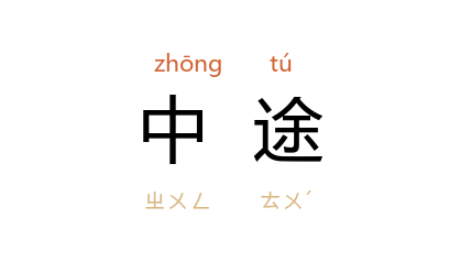 ⒉ 指人生或事情在进行过程中。也作「中涂」。