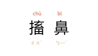宋 苏辙 《香城顺长老真赞引》:“予尝问道於公,以搐鼻为答。予即以偈谢之曰:‘搐鼻径参真面目,掉头不受别钳鎚。’”