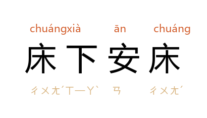 ⒈ 床下加床,比喻重复而无创见。宋·邵伯温也作「床上施床」、「床上安床」。