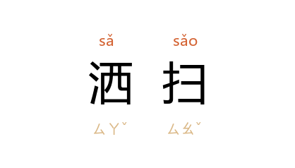 引《礼记·内则》:「洒扫室堂及庭,布席各从其事。」