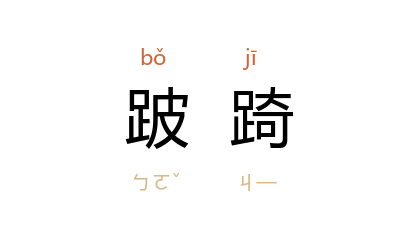 引汉 焦赣 《易林·泰之复》:“跛踦相随,日暮牛罢,陵迟后旅,失利亡雌。”明 唐顺之 《与与槐谢翰林书》:“每遇人事迎送繁扰,跛踦从事则不免仍有厌心耳。”清 魏禧 《姜贞毅先生传》:“每阴雨,公股足骨发痛,步趾微跛踦。”
