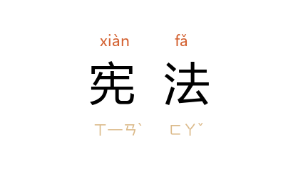 ⒈ 在一国之内,规定国家体制、政府组织、人民权利义务的基本法,称为「宪法」。