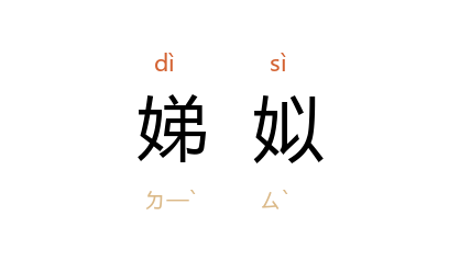 ⒈ 诸妾互称,年长的为姒,年幼的为娣。