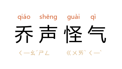 引《醒世姻缘传》第六三回:“﹝ 薛素姐 ﹞把 狄希陈 的双手拶上,叫他招供。拶得 狄希陈 乔声怪气的叫唤。”《醒世姻缘传》第八九回:“这 石巨 的媳妇 张氏,天生也是个不贤惠的妇人,邻舍街坊躲着他他还要寻上门去的主顾,他依你在他门首乔声怪气的恶駡?”