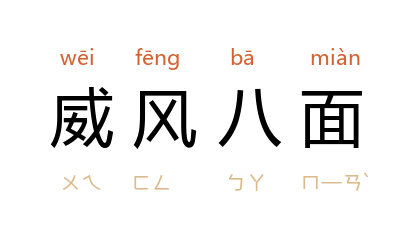 ⒈ 形容神气十足,声势慑人。参见“八面威风”。