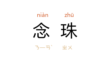 ⒈ 亦称“念佛珠”。念佛号或经咒时用以计数的串珠。用材不一,粒数有十八、二十七、五十四、一百零八之分。