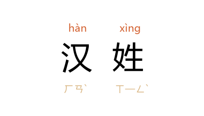 ⒉ 汉族以外的人所冠的汉族之姓。