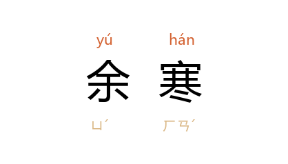 引唐 杜甫 《题张氏隐居》诗之一:“涧道餘寒歷氷雪,石门斜日到林丘。”宋 陆游 《小舟游西泾度西冈而归》诗:“小雨重三后,餘寒百五前。”沙汀 《淘金记》十四:“等到早上的余寒退了,寡妇全家人便都从内室里走出来,散坐在太阳下面。”