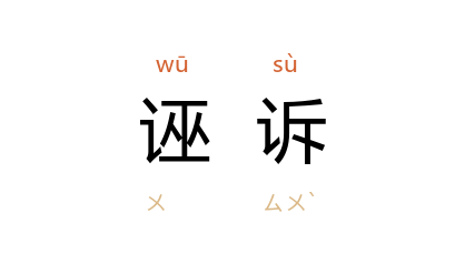 引汉 荀悦 《汉纪·宣帝纪四》:“公卿议以 延寿 前既无状,又诬诉典法大臣,欲以解罪,狡猾不道。”《宋史·儒林传七·程迥》:“贵溪 民伪作 吴渐 名,诬愬县令 石邦彦。迥 言匿名书不当受,转运使不谓然,遂兴大狱,瘐死者十有四人。”清 梅曾亮 《户部郎中汤君墓志铭》:“姚石甫 以 臺湾道 创 英 夷,受诬诉,事白出狱。”
