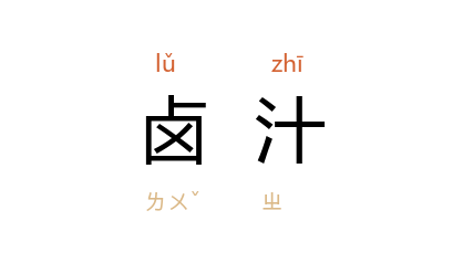 引清 纪昀 《阅微草堂笔记·如是我闻一》:“饮滷汁者血凝而死,无药可医。”1. 盐汁。 阿英 《盐乡杂信》六:“但手续,仍旧不这样就够,再下一步,就是要测这卤汁的厚薄浓淡,看看它的质量。”