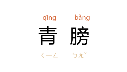 引明 张凤翼 《灌园记·迎立世子》:“我只要燥子我个寡脾胃囉,管打得个丫头满身青膀。”明 冯梦龙 定本《楚江情·门公夜阻》:“捉我打得两腿稀烂,满身青滂。”明 冯梦龙 定本《山歌·烧香娘娘》:“无状,再开言,教你满身青胖。”