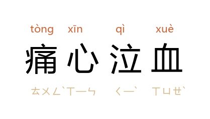 ⒈ 比喻悲痛至极。汉·荀悦宋·司马光〈乞开言路状〉:「臣常痛心泣血,思救其失。」也作「疼心泣血」。