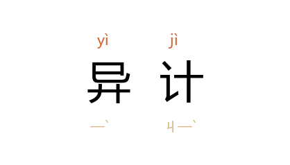 引《后汉书·刘焉传》:“抚纳离叛,务行宽惠,而阴图异计。”《三国志·蜀志·郤正传》:“冲 质 不永, 桓 灵 坠败……家挟殊议,人怀异计。”北齐 魏收 《为侯景叛移梁朝文》:“彼军歼殄 江 淮,屠酷祸源……愚小猜惊,将兴异计。”