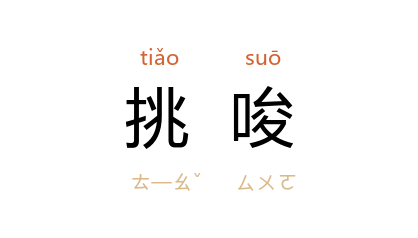 ⒈ 挑拨、教唆。也作「调拨」、「调唆」、「挑拨」、「唆调」。