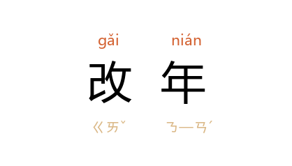 引《汉书·王莽传下》:“三月辛巳朔, 平林、新市、下江 兵将 王常、朱鮪 等共立 圣公 为帝,改年为 更始 元年,拜置百官。”《三国志·魏志·明帝纪》:“二月丁酉,幸 摩陂 观龙,於是改年。”《魏书·高宗纪》:“正平 二年十月戊申,即皇帝位於 永安前殿,大赦,改年。”