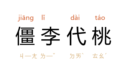 ⒈ 亦作“僵桃代李”。比喻代人受罪责或以此代彼。