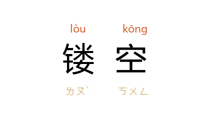 引茅盾 《色盲》二:“太阳光从东窗进来,被镂空细花的纱窗帘筛成了斑驳的淡黄和灰黑的混合品,落在 林白霜 的前额。”《当代》1981年第5期:“孙大均 听见门外的汽车声,跟着一双镂空的皮拖鞋踱了出来。”