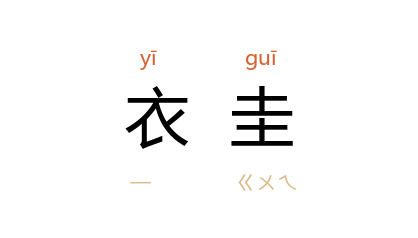 ⒈ 古代的一种衣饰。在裳之右旁,另用一幅布帛对角裁开,缀于右后衽之上,使之钩而向前,谓之“衣圭”。