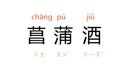 ⒈ 用菖蒲叶浸酿而成的酒。古时多于端午节将菖蒲浸入酒中,相传喝了可以避邪及免疫。