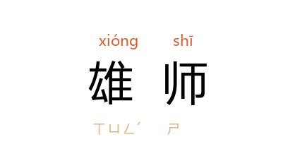 例如:「我军方有百万雄师,绝不怕敌军来袭。」