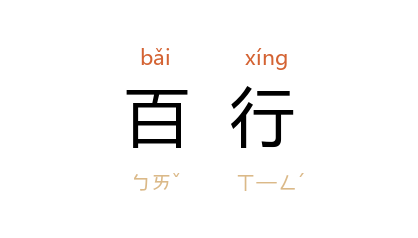 引《诗·卫风·氓》“士之耽兮,犹可説也” 汉 郑玄 笺:“士有百行,可以功过相除。”三国 魏 嵇康 《与山巨源绝交书》:“故君子百行,殊途而同致。”《旧唐书·孝友传·刘君良》:“士有百行,孝敬为先。”明 高明 《琵琶记·几言谏父》:“妾岂爱一身,误君百行。”清 王夫之 《读四书大全说·论语·阳货篇四》:“五常百行,何一而不以恭、宽、信、敏、惠行之?五常百行,道也。”